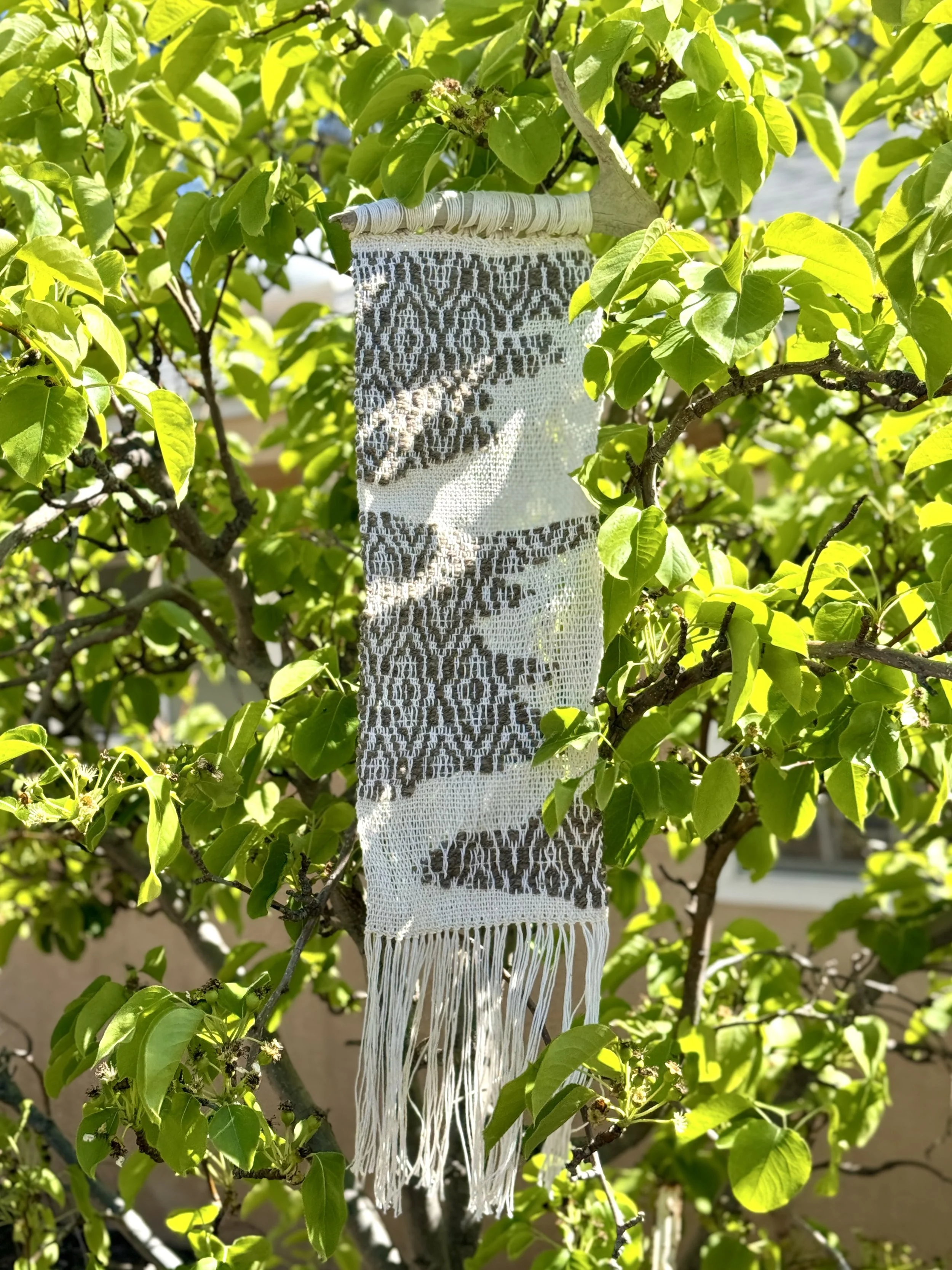 Each piece is fully designed and crafted by the artist,. All natural materials such as sticks and bones are ethically sourced from vendors in the United States or gathered by the artist with permission. Designs for wall art and tapestries are never repeated, ensuring that you are taking home a truly unique work of art. The small imperfections you may notice are the result of the imperfect human hands involved in every step of the process.